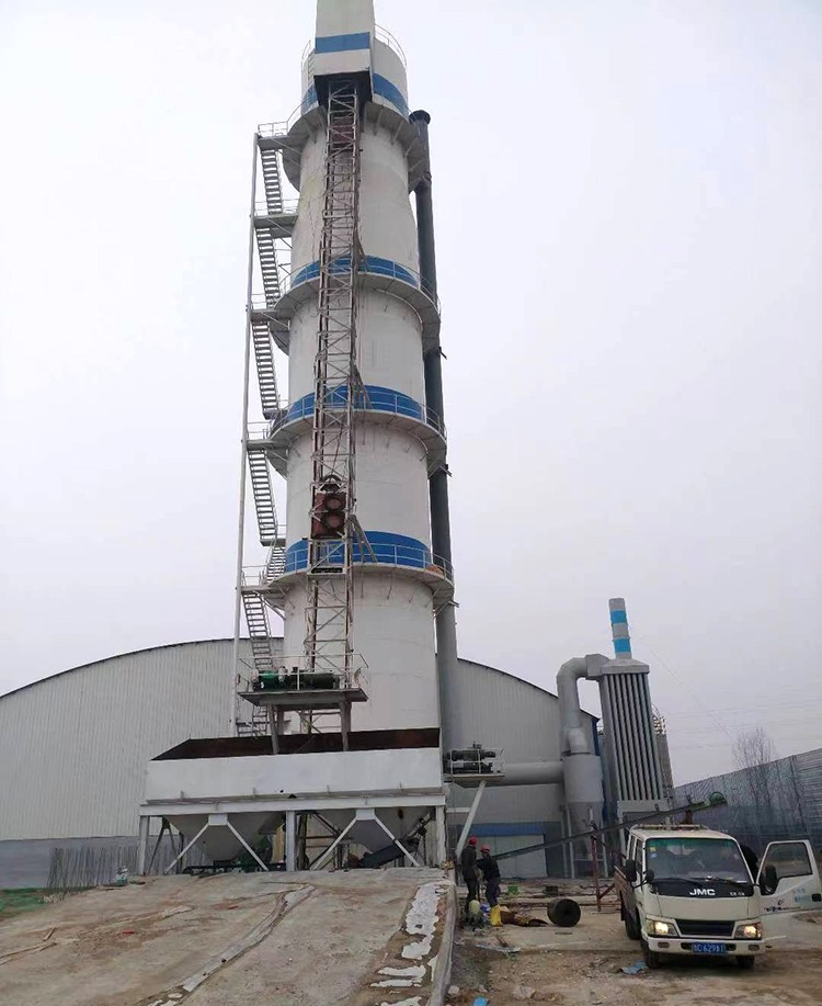 石灰窑,与石灰回转窑相对,是全钢结构竖立状的圆柱形筒体设备,利用物料自重下行与热气上升进行热交换的原理进行石灰烧制。本公司能设计制造生产能力50-400 t/d的石灰立窑设备,其运行稳定可靠、环保节能、自动化程度高,可利用各种低热值转炉、高炉煤气、电石炉尾气等作为燃料。